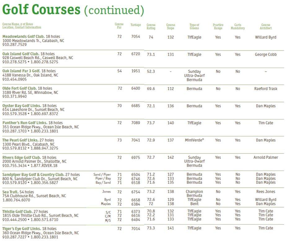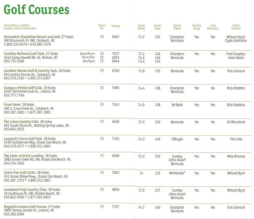 NC Brunswick Golf Guide