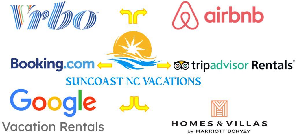Exposing Your Property on the Hottest Booking Channels. Our third-party advertising partners are essential to getting your property exposed to the most potential guests. We choose our partners based on their ability to provide guests the same Suncoast NC Vacations experience as guests who book directly with us. We strive to ensure every potential guest has an easy, worry-free booking experience and prompt responses to their needs during their stay — all while maximizing your revenue. Currently we have partnerships with: