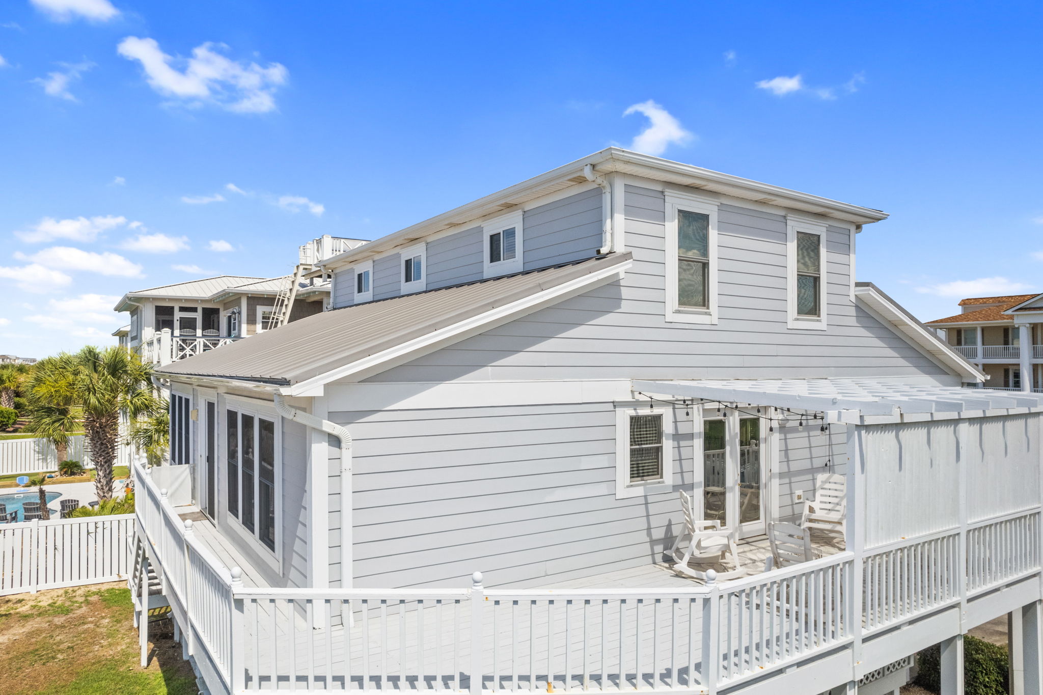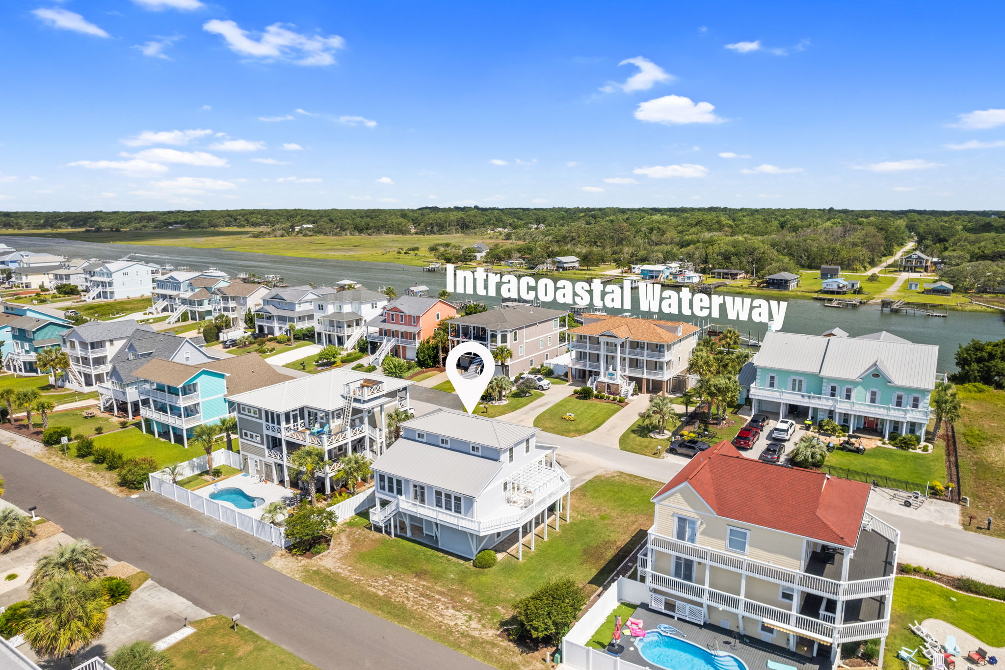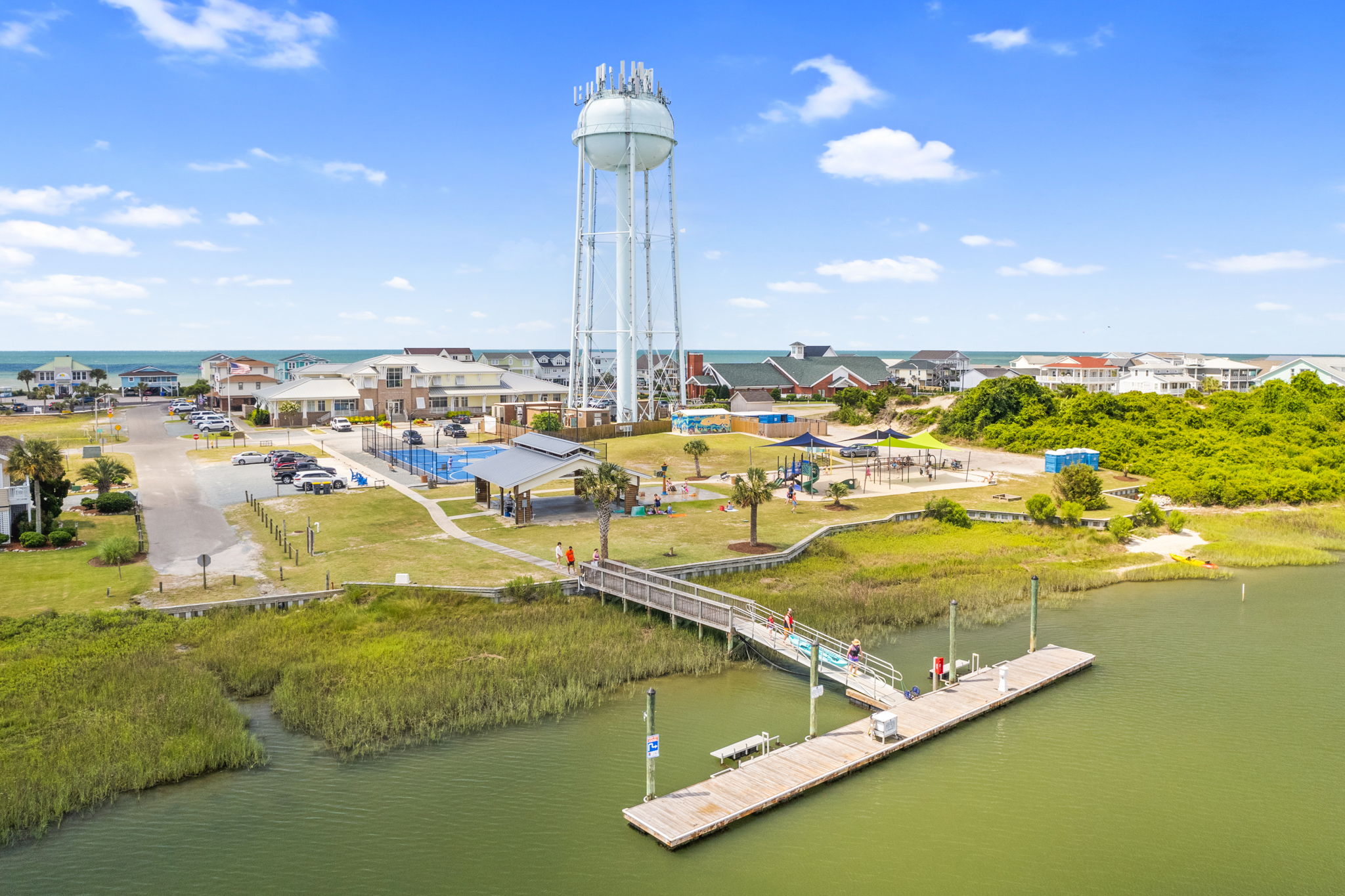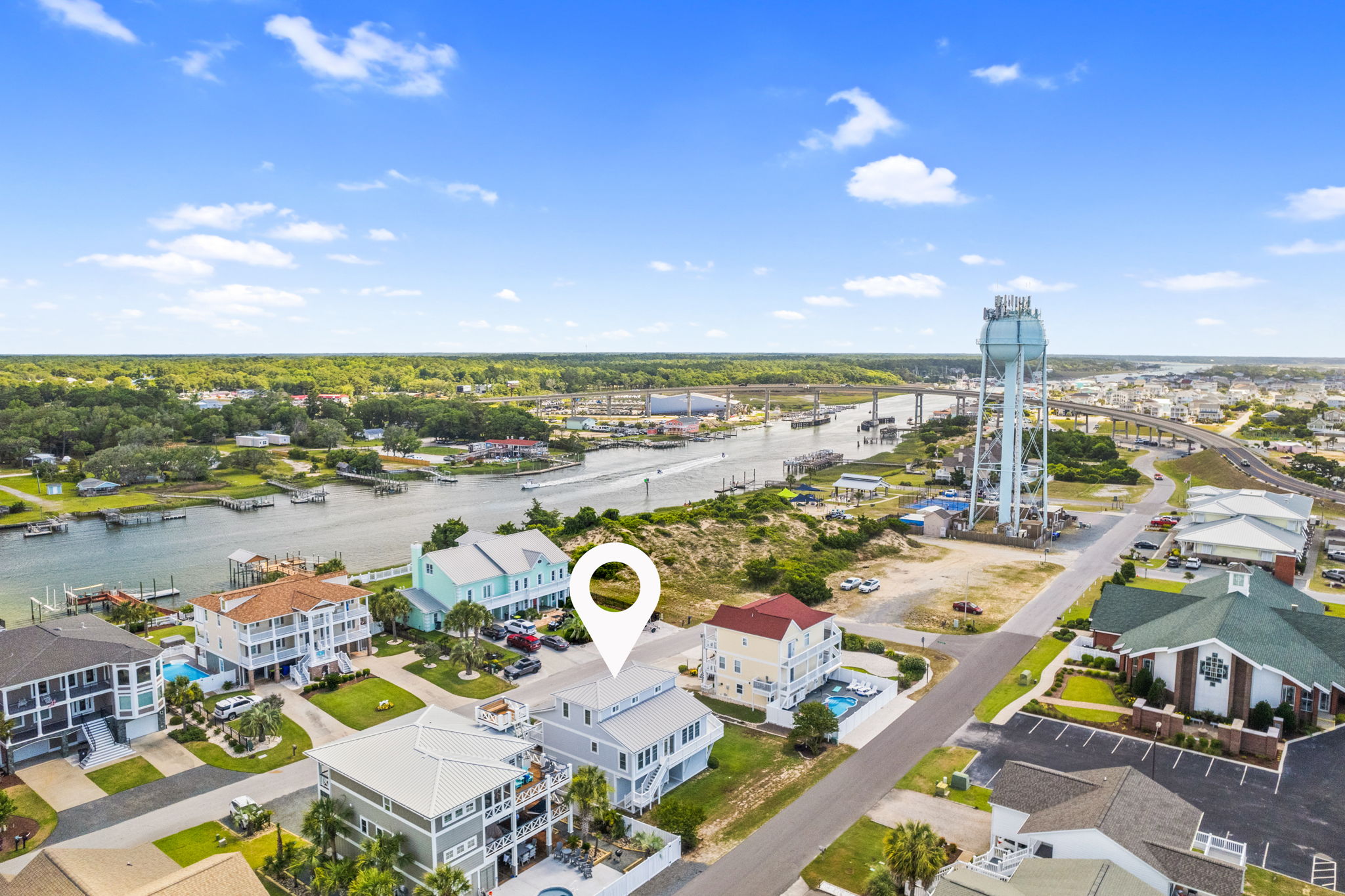 From the expansive wrap porch, admire the Intracoastal Waterway, and the iconic jewel of Holden Beach, its stunning causeway bridge or take in an evening concert live from the park from the comfort of your own deck!